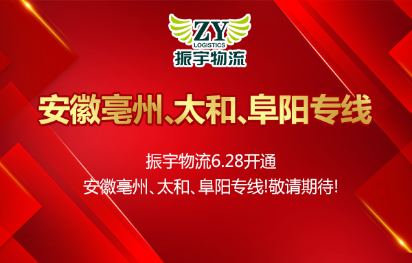 熱烈祝賀振宇物流6月28日開通安徽亳州、太和、阜陽(yáng)專線!阜陽(yáng)可中轉(zhuǎn)界首、臨泉、阜南、潁上、利辛...