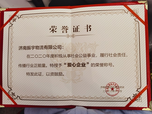 熱烈祝賀振宇物流榮獲“突出貢獻(xiàn)企業(yè)”“愛(ài)心企業(yè)”榮譽(yù)稱號(hào)!
