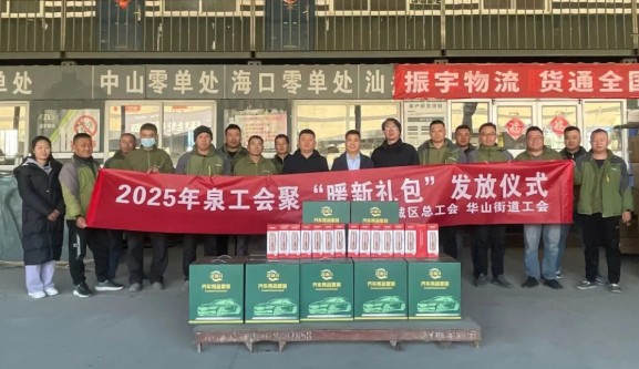 寒天暖意,工會(huì)同行。為深入踐行市、區(qū)總工會(huì)關(guān)于關(guān)心關(guān)愛(ài)新就業(yè)形態(tài)勞動(dòng)者的工作部署,12月8日,華山街道工會(huì)“泉工會(huì)聚‘暖新禮包’發(fā)放活動(dòng)”走進(jìn)振宇物流集團(tuán),將暖心關(guān)懷精準(zhǔn)送達(dá)基層一線。華山街道黨工委副書(shū)記連東坡、工會(huì)副主席王曉鳴一行深入企業(yè),為新就業(yè)形態(tài)勞動(dòng)者親手送上滿(mǎn)載關(guān)懷的“暖新禮包”,切實(shí)讓職工感受到工會(huì)組織的溫暖與力量。振宇物流集團(tuán)董事長(zhǎng)張憲振、總經(jīng)理孫松、工會(huì)主席張貴強(qiáng)全程陪同,對(duì)華山街道及工會(huì)領(lǐng)導(dǎo)的關(guān)心支持表示衷心感謝。