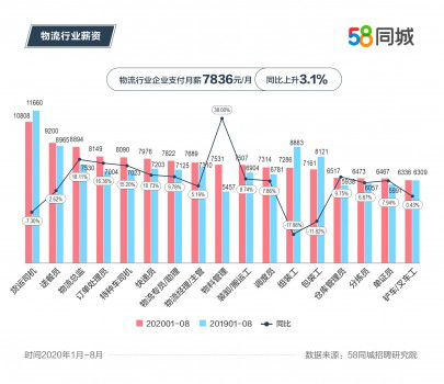 薪酬水平也是物流行業(yè)就業(yè)的重要指標(biāo),58同城招聘研究院數(shù)據(jù)顯示,今年1-8月,交通運(yùn)輸、倉儲(chǔ)和郵政業(yè)支付月薪達(dá)到7836元,同比上升3.1%。典型職位中,貨運(yùn)司機(jī)支付月薪第一,達(dá)到10808元;送餐員支付月薪排名第二,為9200元;物料管理支付月薪同比上升最快,增幅38%,月薪達(dá)到7531元??梢?,物流行業(yè)崗位薪資與崗位技術(shù)含量、市場(chǎng)需求、勞動(dòng)強(qiáng)度密切相關(guān),技術(shù)含量高、市場(chǎng)需求大、勞動(dòng)強(qiáng)度大的崗位收入更高。