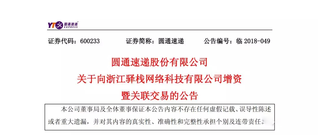 物流指聞最新獲悉,圓通速遞發(fā)布公告稱(chēng)為提升公司末端派送服務(wù)時(shí)效,拓展多元化派送渠道,落實(shí)終端戰(zhàn)略布局,公司與圓澤投資、菜鳥(niǎo)供應(yīng)鏈、中通吉網(wǎng)絡(luò)、福杉投資、申通投資、百世物流科技及云鋒麒泰于5月29日在杭州共同簽署《關(guān)于浙江驛棧網(wǎng)絡(luò)科技有限公司之增資協(xié)議》。