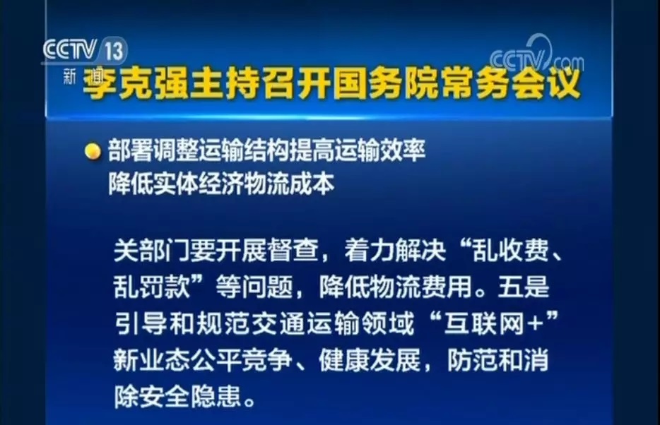 國務(wù)院總理李克強6月27日主持召開國務(wù)院常務(wù)會議,聽取深入推進“互聯(lián)網(wǎng)+農(nóng)業(yè)”促進農(nóng)村一二三產(chǎn)業(yè)融合發(fā)展情況匯報;部署調(diào)整運輸結(jié)構(gòu)提高運輸效率,降低實體經(jīng)濟物流成本。會議指出,調(diào)整運輸結(jié)構(gòu)、提高綜合運輸效率,降低全社會物流成本,對提升實體經(jīng)濟競爭力至關(guān)重要。