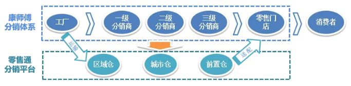 而對于康師傅而言,以往只是將物流外包給第三方,分銷商流仍由自己把控;而傳統(tǒng)的分銷體系中,商品從工廠到小店的鏈路長,通常要經(jīng)過三四個層級,而且品牌廠商一般只和代理商、經(jīng)銷商接觸,對于末端小店的銷售情況知之甚少,更不用說對最終消費者的感知了。鏈路長、數(shù)據(jù)斷層等導致牛鞭效應較為明顯,因此康師傅也希望借助數(shù)字化平臺來打通渠道鏈條、提升通路效率。